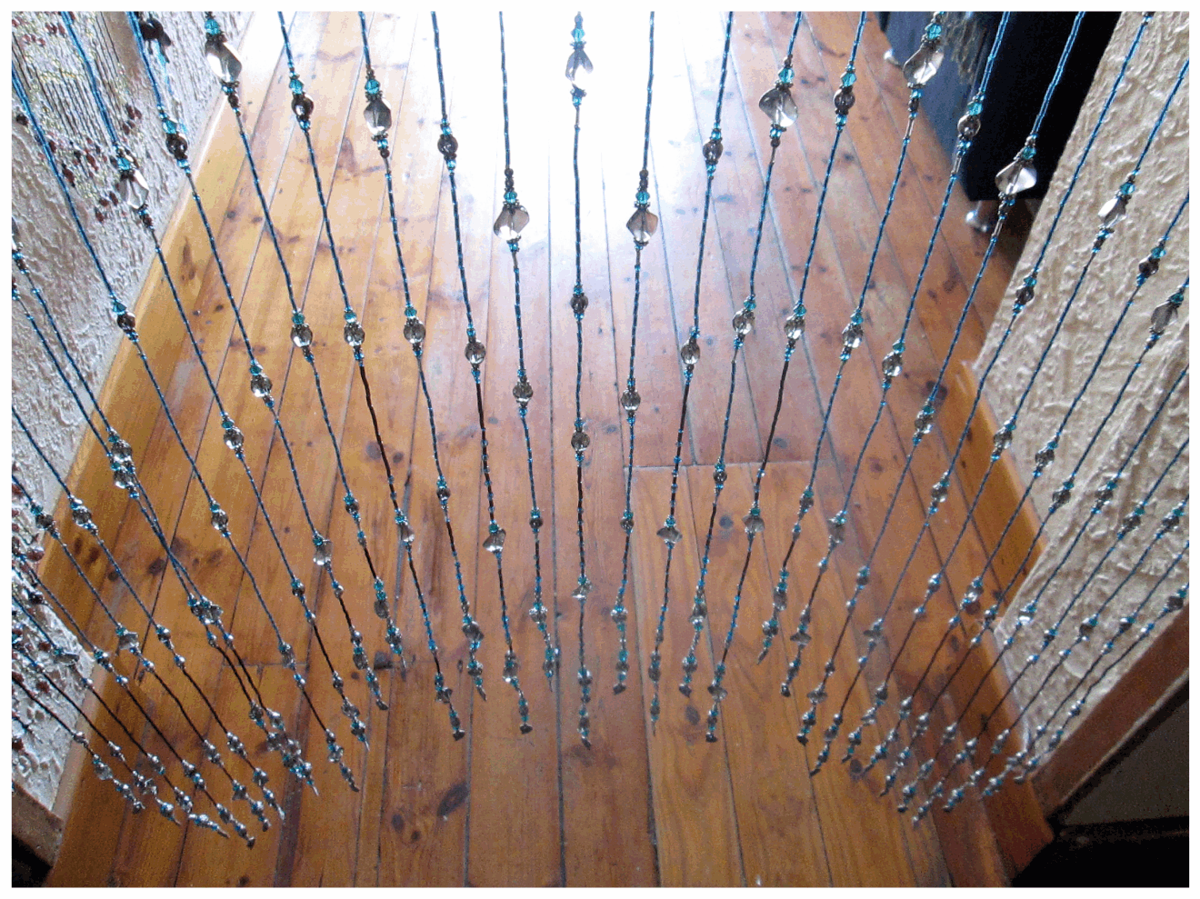 A beautiful simmering curtain. symmetrical patterned 39 stringed hand strung beaded curtain.