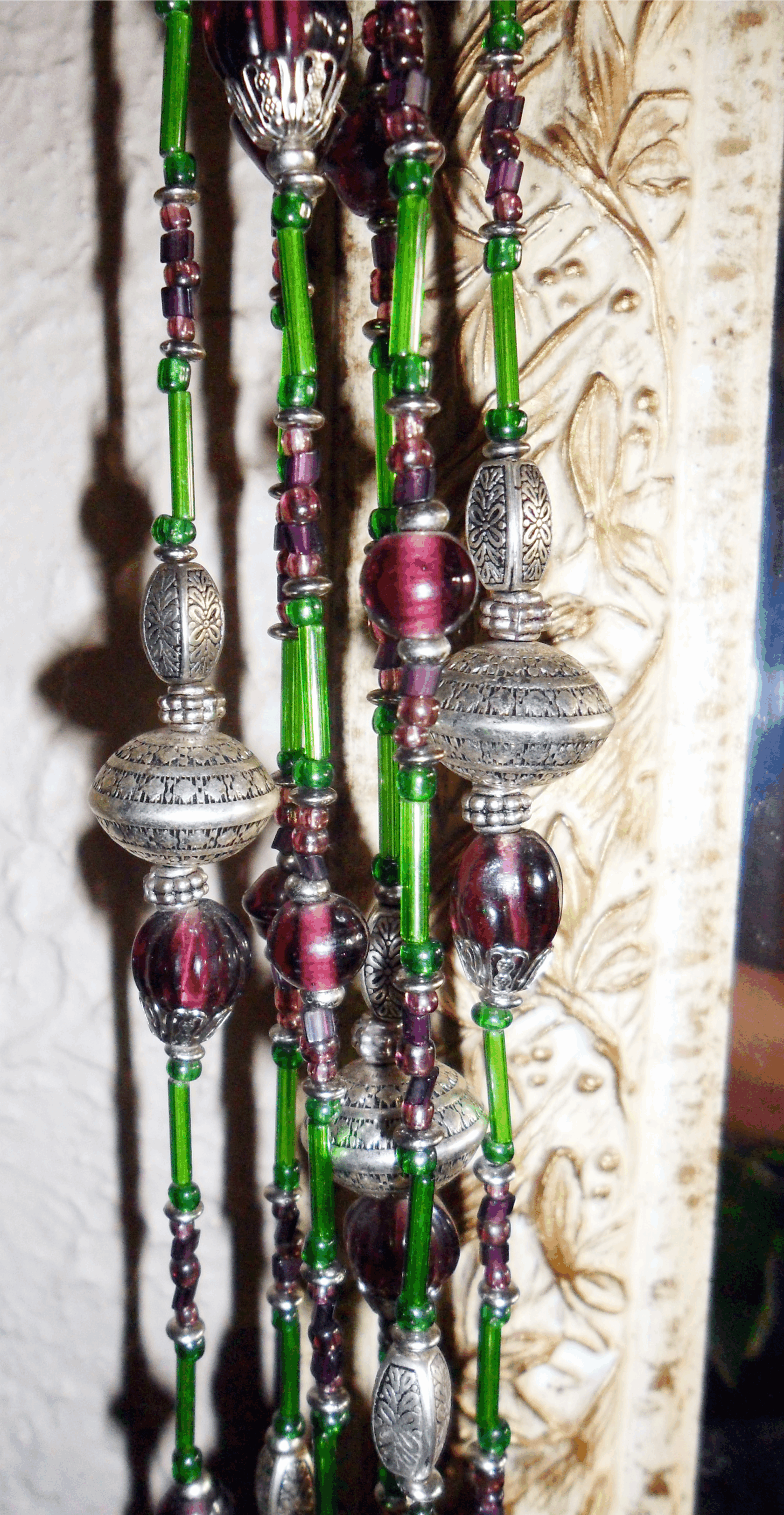 They are made of a transparent polymer that dyes well. Available in a large arrary of colors and cast, molded, pressed or extruded into all sorts of shapes. Acrylics can look as if they are crystal, glass, wood, even metal. They look as if they are heavy but are in fact quite quite light weight, which makes them prime candidates for decor ideas that involve many strands, or in designs that are heavy, encrusted or layered. Do I like them? Sometimes, even though I admit that I am a bead snob.
